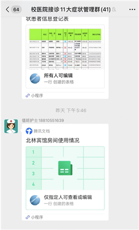 海量的流调信息,一次次统计、一张张表格、一通通流调电话,24小时不休地工作是常态。她与校内外相关人员对接的聊天记录翻都翻不完,凌晨的对话框也是频频弹出,从不停歇。