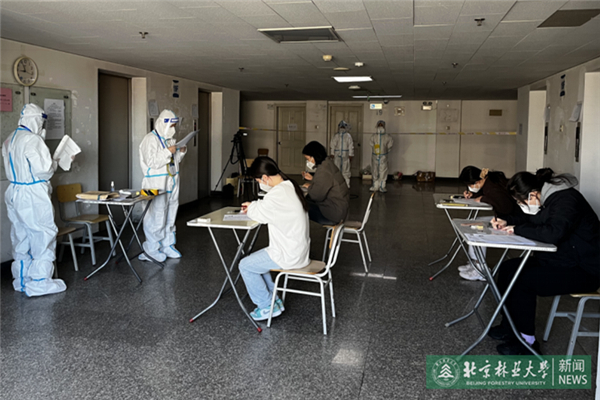 11月25日,考试筹备小组根据学生们的考试时间策划调整核酸检测顺序;协调学校信息化建设与管理办公室保障楼内考试网络畅通;沟通物业考试期间电梯不在考场所在楼层暂停,保证考试不受干扰;联系综合保障部提供考场,设置警戒线;协调楼外力量打印递送考试图纸路线……