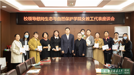 校长安黎哲前往生态与自然保护学院,为女教工们赠送节日卡片和书籍,并与她们座谈。他希望大家接续奋斗、创新工作,为生态文明、绿色发展、人与自然和谐共生的中国式现代化建设作出更大贡献。