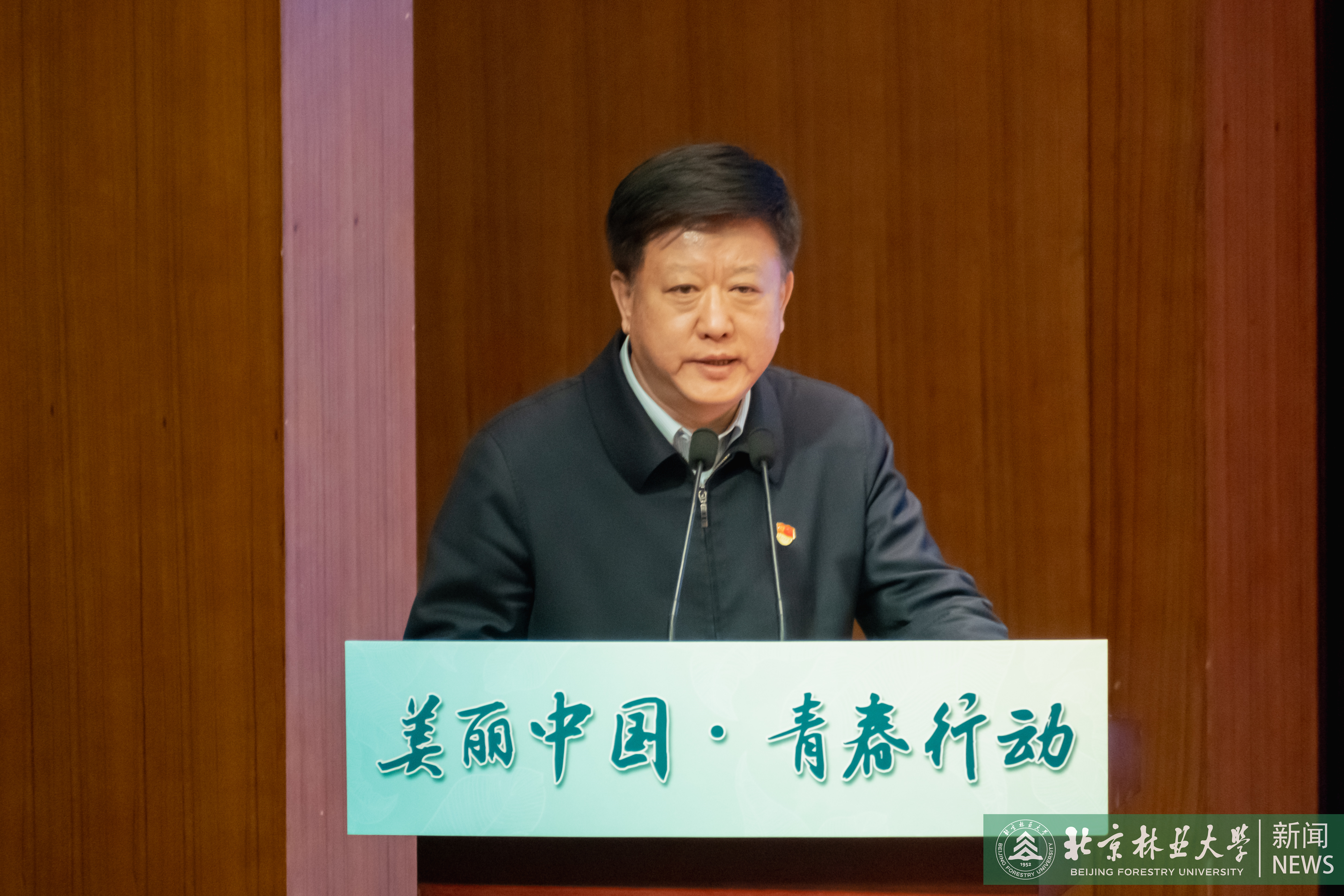 国家林业和草原局宣传中心副主任杨波肯定了我校在高层次绿色人才培养和提升青年生态文明素养方面做出的贡献。他强调,要对标党的二十大新部署新要求,站在人与自然和谐共生的高度谋划和推进林草工作,在生态环境质量稳定改善、持续实施重要生态系统保护和修复重大工程上接力奋斗。