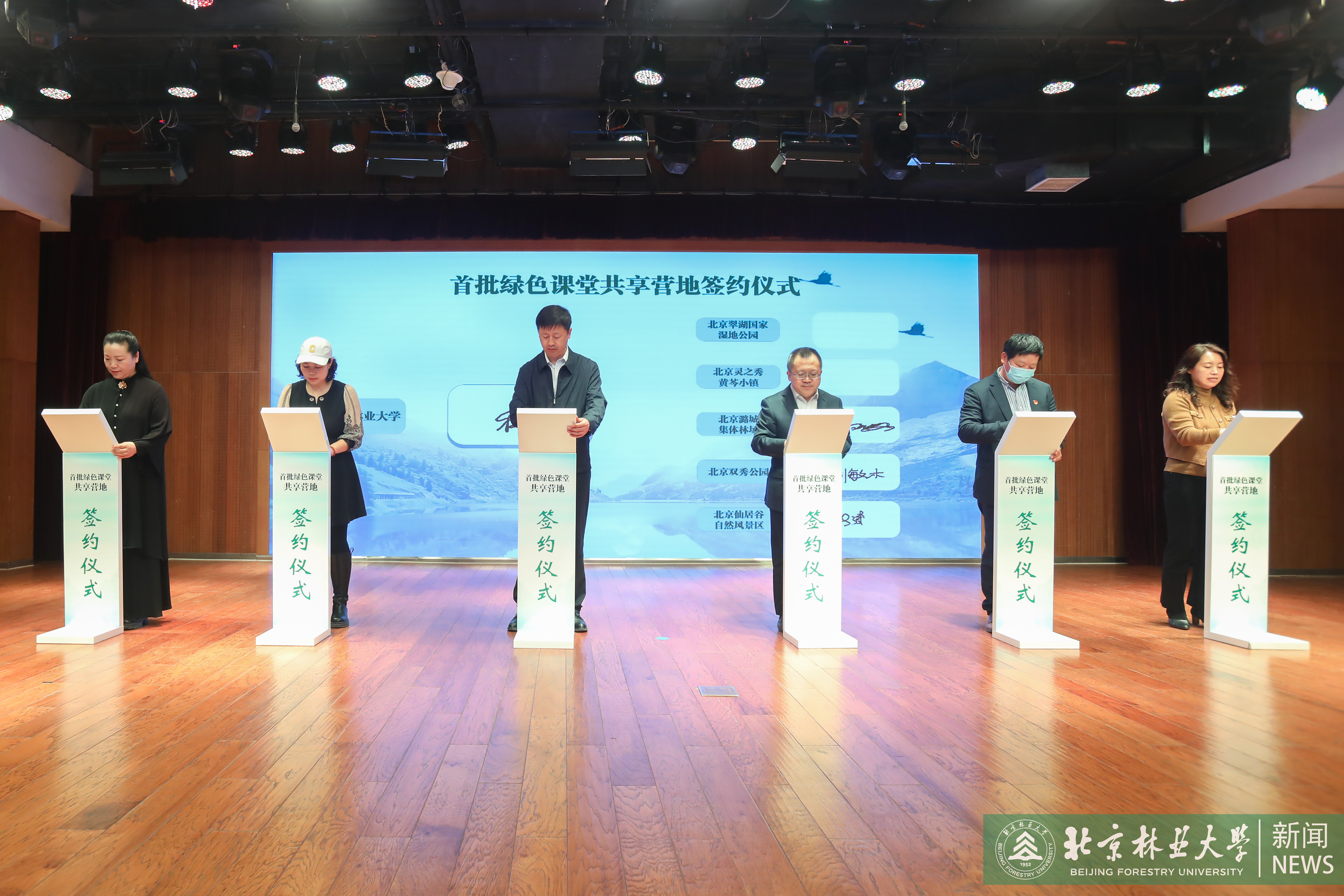 推进会上启动了首届全国青少年绿色科技创新大赛。会上,我校与北京翠湖国家湿地公园、北京仙居谷自然风景区、北京潞城集体林场等首批绿色课堂共享营地合作代表单位签约。今后将以公园、城市绿地、自然林场内的动植物等要素为研究对象,发挥高校青年投身绿色教育服务的主观能动性,开展首都青少年自然教育科普活动。