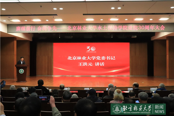 王洪元在讲话中充分肯定了水土保持学院建院30年来取得的成绩,对学院发展提出殷切希望。他指出,水土保持学院建院以来,始终坚持党建引领事业发展、落实立德树人根本任务、弘扬植绿报国北林精神,为我国绿色发展做出了不可替代的卓越贡献,得到了上级部门、地方政府和社会各界的广泛赞誉。他强调,水土保持学院要深入学习贯彻落实党的二十大精神,把握新时代水土保持发展的重大机遇,以奋发有为的姿态开辟新领域新赛道、塑造新动能新优势。他希望,水土保持学院坚持党对学院工作的全面领导,大力实施人才强院、人才引领发展战略,聚焦“双一流”目标任务,全力打造水土保持一流学科,努力建设水土保持领域的最强学院。