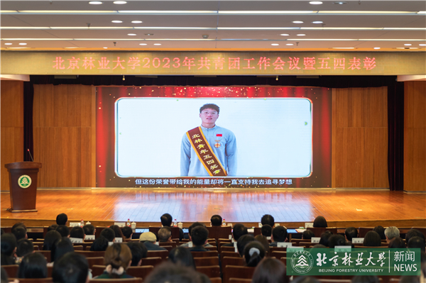 4月27日下午,“学习二十大 永远跟党走 奋进新征程”北京林业大学2023年共青团工作会议暨五四表彰大会在学研报告厅举行。团中央组织部副部长田小飞、校党委书记王洪元、校党委副书记孙信丽出席会议,相关职能部门负责人、各学院党委书记、团干部和团员青年代表等近300人参加会议。