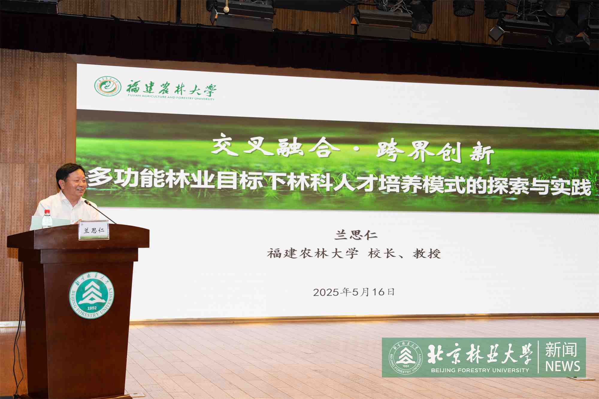 福建农林大学校长兰思仁作《交叉融合·跨界创新 多功能林业目标下林科人才培养模式的探索与实践》交流报告。他指出,发展多功能林业符合林业高质量发展的战略需求,学科交叉融合是应对变局、开拓新局的时代需要,是地方高校应对发展挑战、开辟高质量发展新路径的有效探索和重要法宝。他从统筹做好顶层设计、组建实体化新型学院、重塑林业学科专业体系、改革传统林科人才培养模式、推进林科师资队伍转型发展和创建新型产教融合科研育人平台等六个方面介绍了福建农林大学林科人才培养的探索与实践。他表示,福建农林大学将朝着建成“创新人才的培养基地、知识创新的研究基地、关键技术的攻坚基地和高新技术产业的孵化基地”的目标奋力前行。