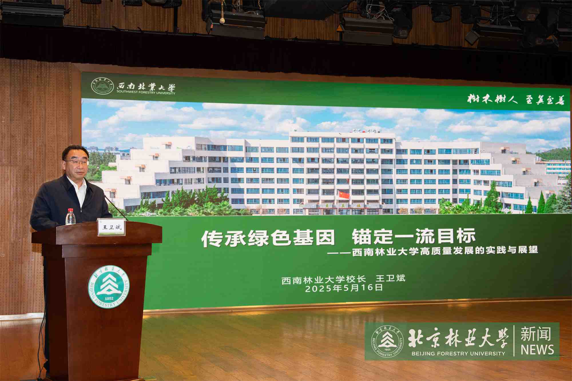 西南林业大学校长王卫斌在《传承绿色基因 锚定一流目标——西南林业大学高质量发展的实践与展望》报告中,介绍了学校发展历程、建设成效与未来规划。西南林业大学以传承绿色基因、践行“两山”理念为使命,将生态文明教育融入人才培养,深化教育教学改革,实施卓越农林人才培养计划;构建“3+2+1”特色学科群,学科学位建设稳步推进;持续加强师资队伍建设,重点突出科研成果,社会服务与国际合作成效显著。他指出,未来学校要实行“三步走”战略,走好追求卓越、特色发展、协同创新、锐意改革、开放办学“五条路”,系统推进教学、学科专业等“八大综合改革”,全方位提升办学治校水平,聚焦产教融合、国际协同,助力教育强国与生态文明建设。