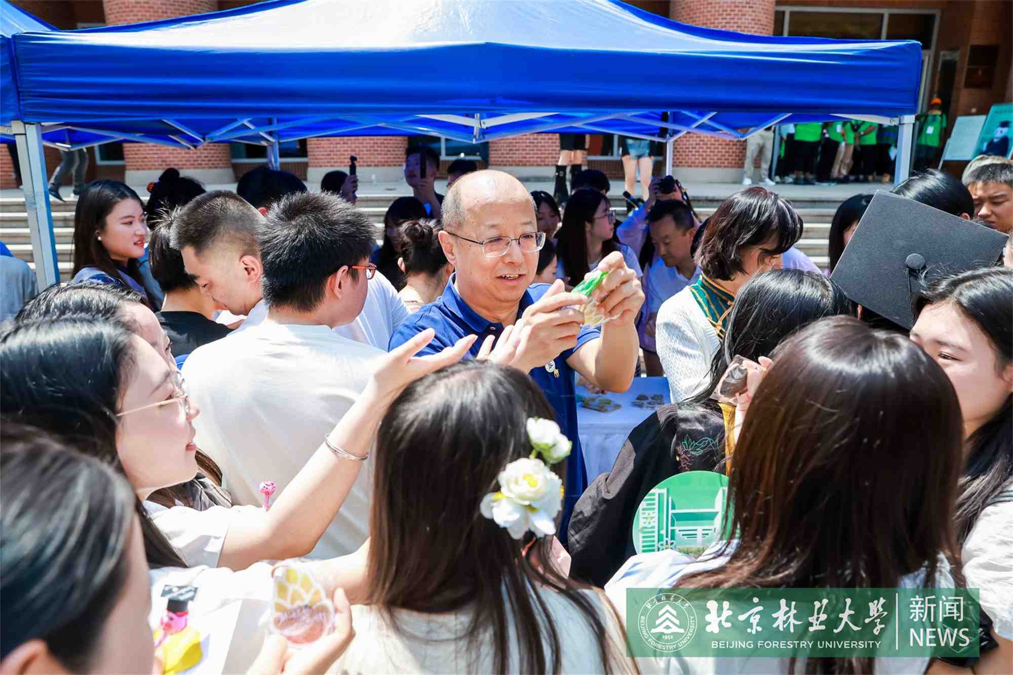 在市集现场,校领导与毕业生亲切交流,询问毕业生们的学习生活情况,倾听他们对学校发展的建议。校领导鼓励毕业生们,在新的起点继续牢记林人初心,永葆林人情怀,在服务生态文明建设的新征程中展现北林学子的风采。在互动环节,校领导在北林融媒的“林印芳华”展位为毕业生加盖祝福语印章并签名留念,同时向参加活动的同学们送上精美文创礼物及我校综合保障部餐饮中心的特色产品。