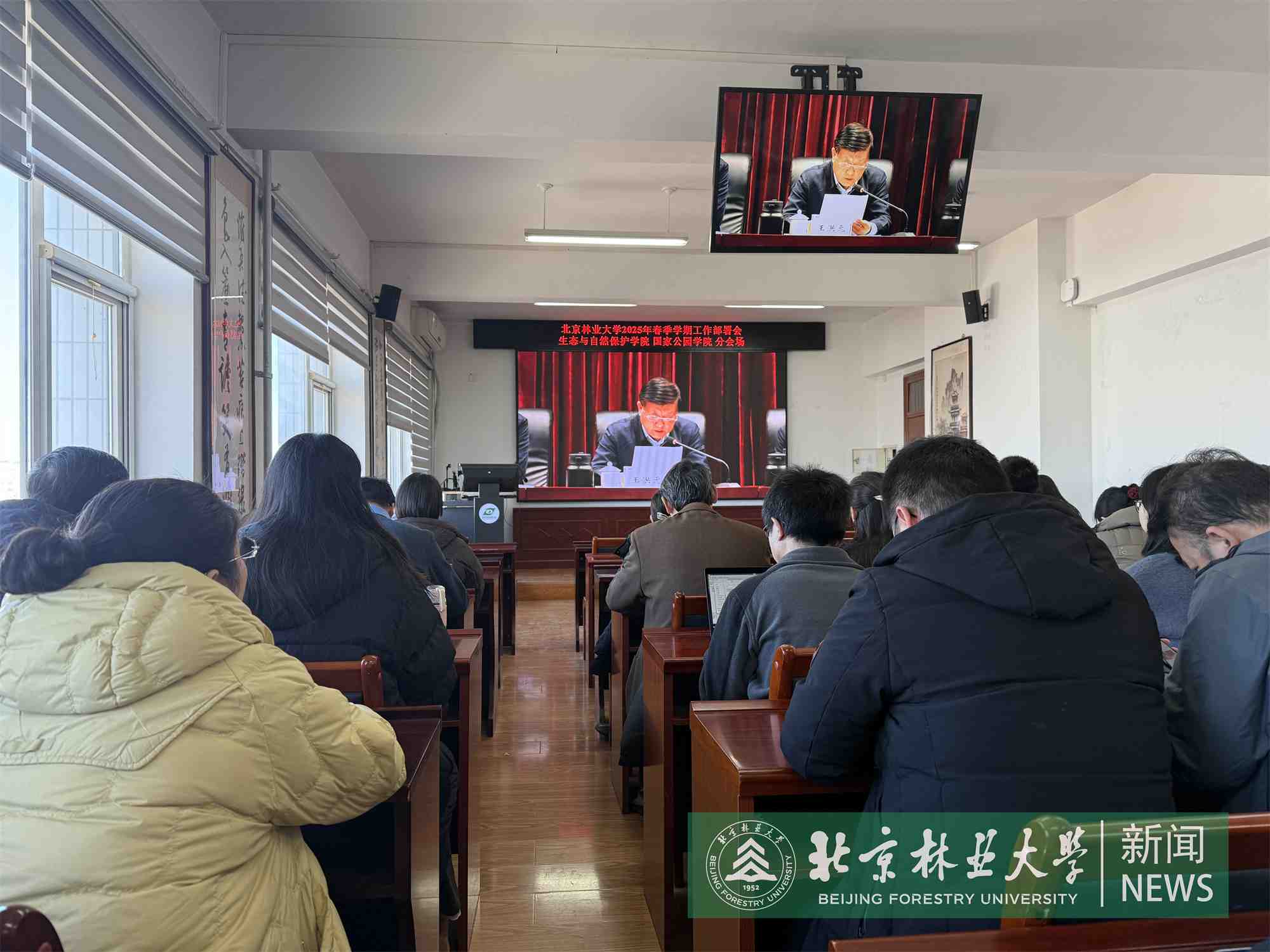 王洪元就把握当前形势、改进工作作风、抓好2025年工作落实提出三点要求。一是要着力增强“强校”意识。认清外部环境变化,把握阶段特征,做到心中有数、有所为有所不为。要牢牢把握国家生态文明建设和人与自然和谐共生的中国式现代化这个最大有利条件,精准把握教育强国建设“扶强支强”的重大特征、加快构筑强校支点,及时把握生态文明领域国际交流合作的战略机遇期、加快补短板。二是要着力扩大优质“增量”。抓住重大发展机遇,扩大办学增量,集中力量推动落实全年重点任务。要全力构建“一校两区一园”新发展格局,巩固并扩大“双一流”学科规模和优势,进一步营造良好的学术生态和人才成长环境,瞄准国家战略方向和重点发展领域规划布局新的前沿交叉学科,多措并举争取更多办学资源。三是要着力改进工作作风。增强使命感紧迫感,加强作风建设,争做有理想负责任的行动主义者。要全面增强履职能力,加快节奏提高效率,注重检视工作成效。他强调,面对今年的形势任务,必须坚定信心、团结一致,充分调动全校师生的积极性主动性创造性;保持定力、振奋精神,在服务生态文明建设领域发挥优势作用,筑牢发展根基、放大比较优势;脚踏实地、真抓实干,认真落实、全面完成既定工作目标,在教育强国建设新征程中打开事业发展的新天地。