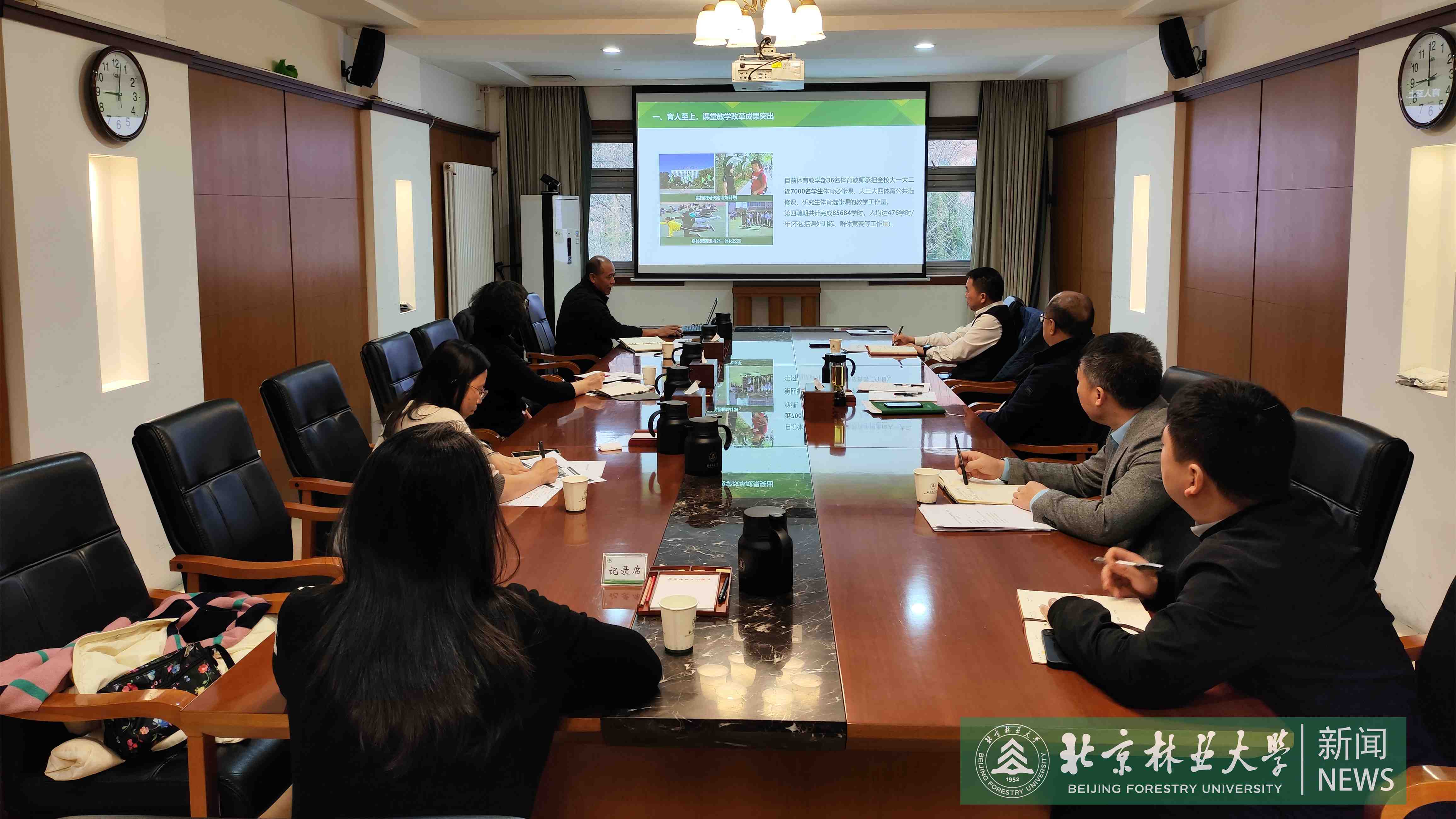 会上,教务处、体育教学部、艺术设计学院、综合保障部负责人汇报了本科生体育、美育和劳动教育的主要进展、存在不足和未来考虑。