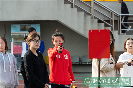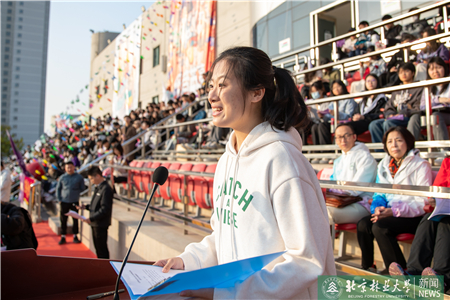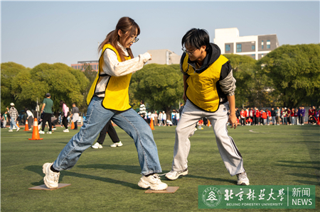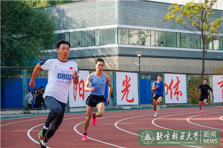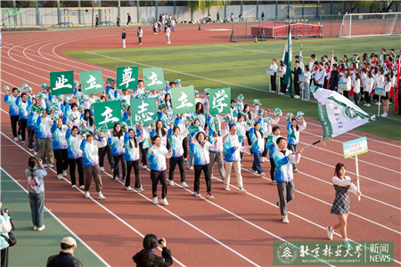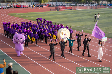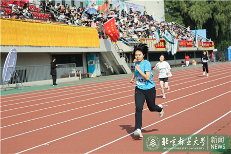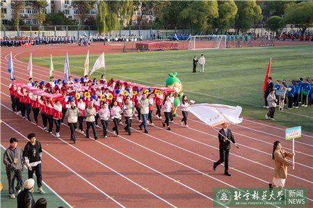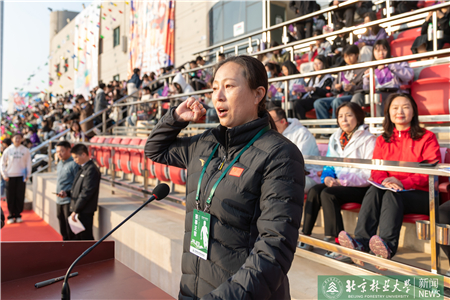 王洪元现场宣布运动会开幕,师生们用欢呼声为运动员加油,共同领略北林学子在运动场上的青春风采和蓬勃朝气。
