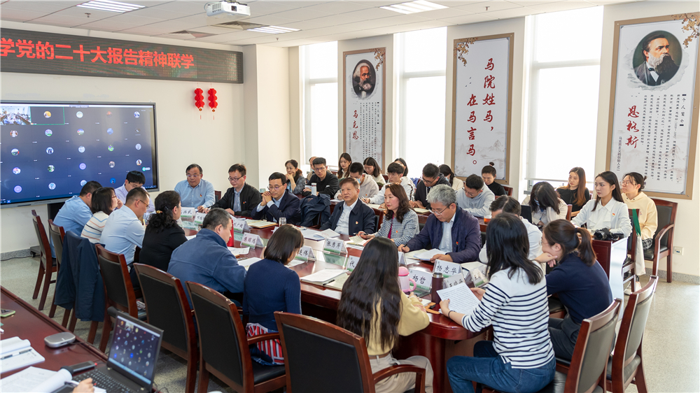 10月19日,马克思主义学院组织开展党的二十大精神联学,校党委书记王洪元以普通党员身份参加,并指导学院开展党的二十大精神学习宣传贯彻工作。学院党委委员、班子成员、全体教师和马克思主义理论研究生宣讲团成员参会。